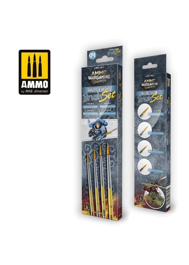 AMMO brush set for use with acrylics, enamels and oils. Contains very versatile synthetic brushes resistant to the most aggressive products. The best modelling brushes for precise results with high durability. The ideal selection of shapes and sizes to paint any type of model or diorama.