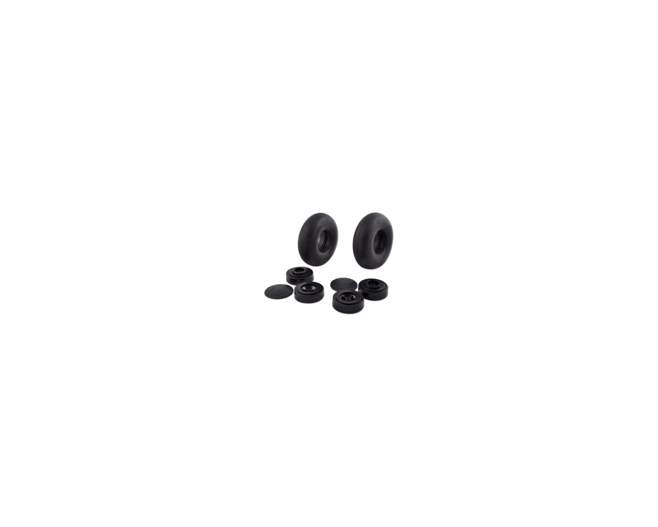Pair of Rubber Tires and Hubs for this design by Duncan Hutson, a true to 1:4 scale Tiger Moth detailed on 4 huge plan sheets and builds into a top-class model when using the accessories available.