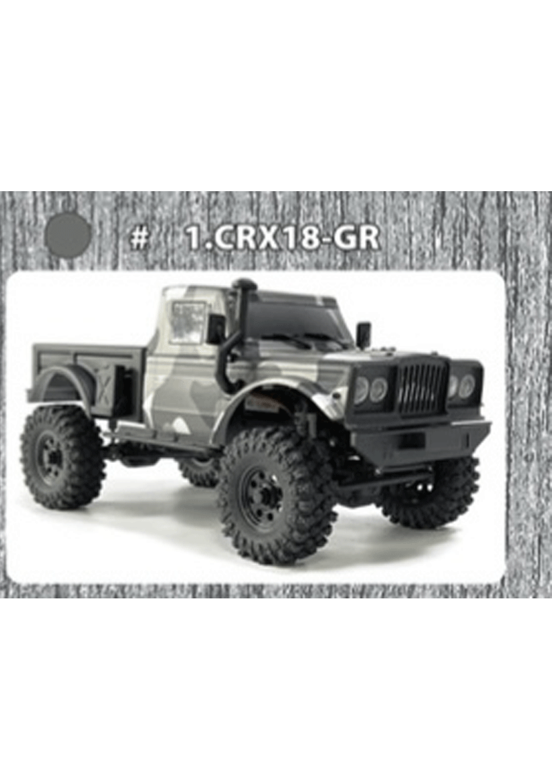 Aesthetically, the CRX18 is a faithful reproduction of its big brother. The bridges have the same design as those that equip the CRX2. The body has the same grille and the same accessories (jerrycan, snorkel, windshield wipers and mirrors). Finally, the tires are an exact reproduction of the Climber. A nice little detail: the running boards are equipped with a slot in which the bottom of the body is housed so as not to damage it on obstacles.