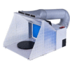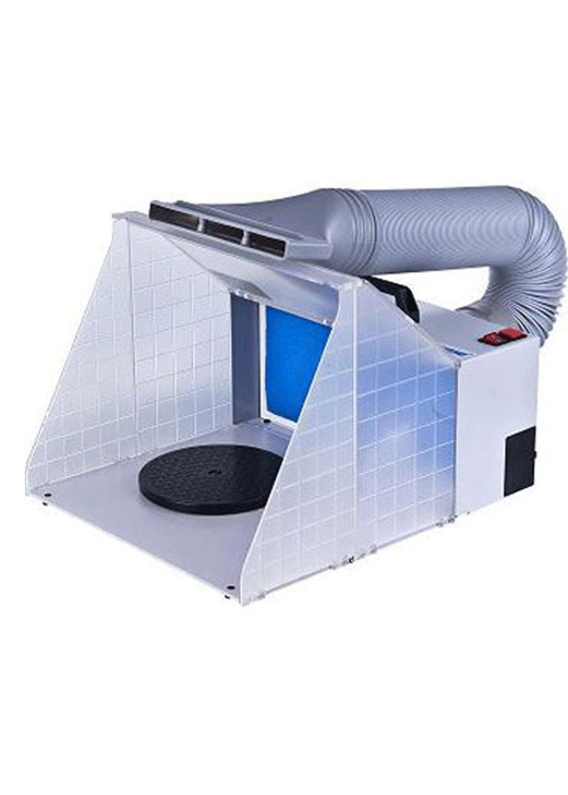 This airbrush spray booth comes with a fully flexible air extraction hose which can be used to direct contaminated air out of a window.