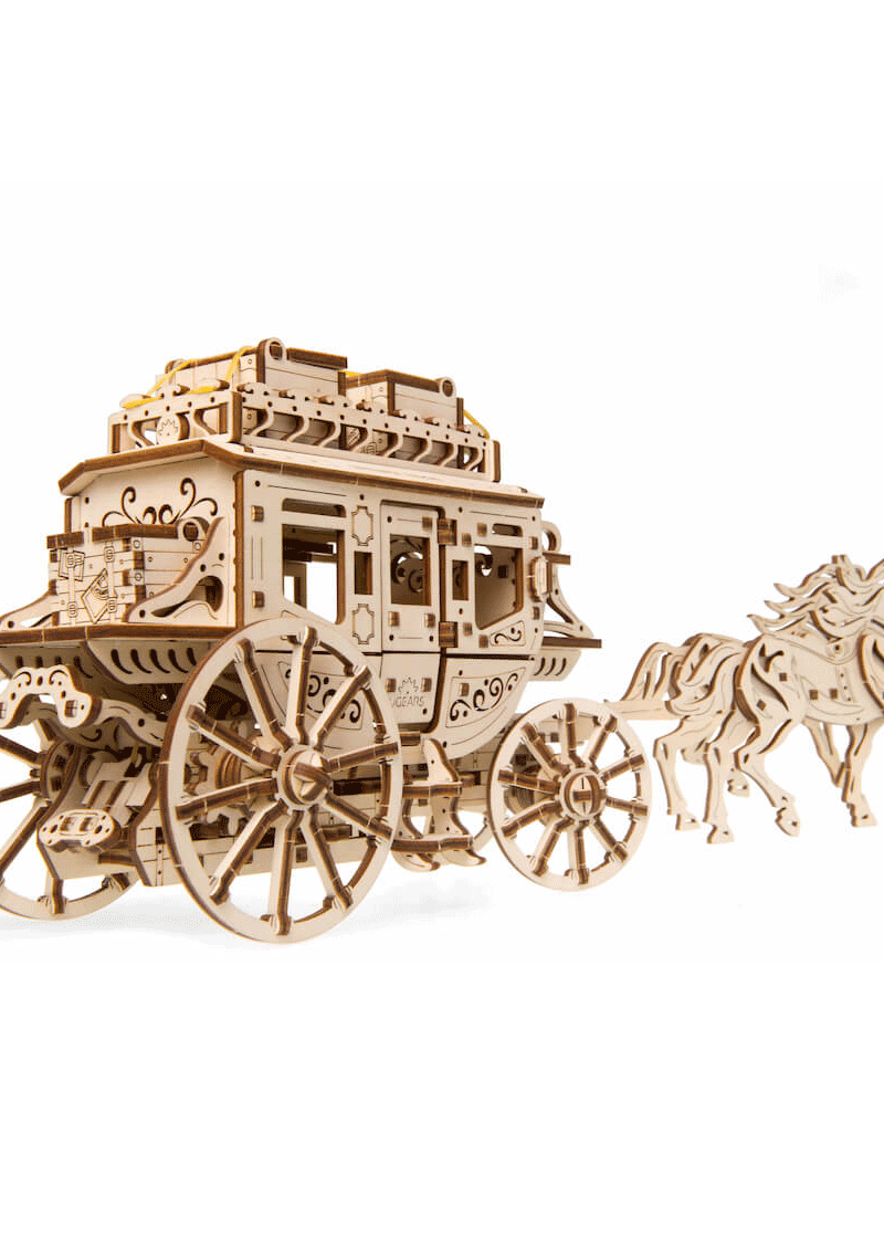 Ugears introduces the legendary carrier from the late 18th – 19th century, when the stagecoach became a common means of communication as well as passenger and small cargo transportation in the US. The coach delivering letters, packages and money became a signature attribute of the Wild West culture, as represented in films and stories.